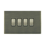 The Hamilton 89CR24AB-B is a 10A quadruple 2 way light switch made using high quality materials, in a slim and elegant antique brass finish.