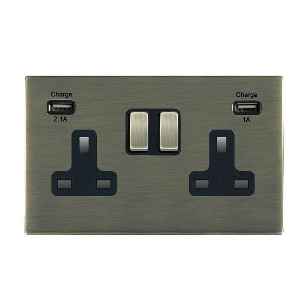 The Hamilton 89CSS2USBULTAB-B is a 13A double switched socket with dual 2.4A USB-A charger made using high quality materials, in a slim and elegant antique brass finish.