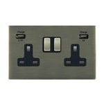 Hamilton 89CSS2USBULTAB-B CFX Antique Brass 13A double switched socket with dual 2.4A USB-A charger
