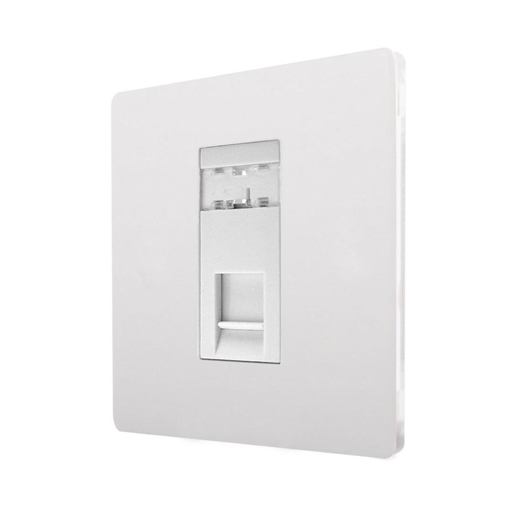 The Hamilton 8WPCJ45W is a 1 module RJ45 CAT5E unshielded data socket made using high quality materials, in a slim and elegant primed white finish.