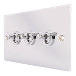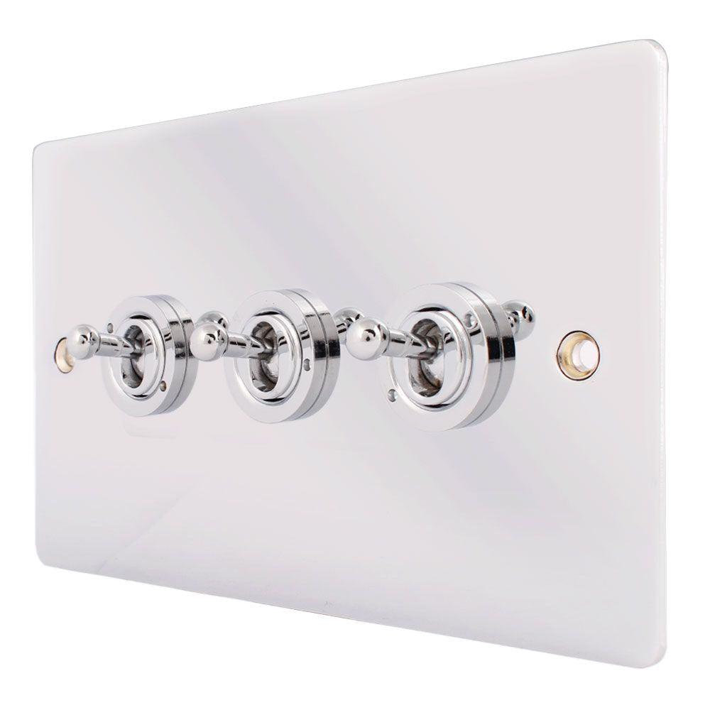 The Hamilton 87T23 is a 20A triple toggle light switch 2 way made using high quality materials, in a slim and elegant polished chrome finish.