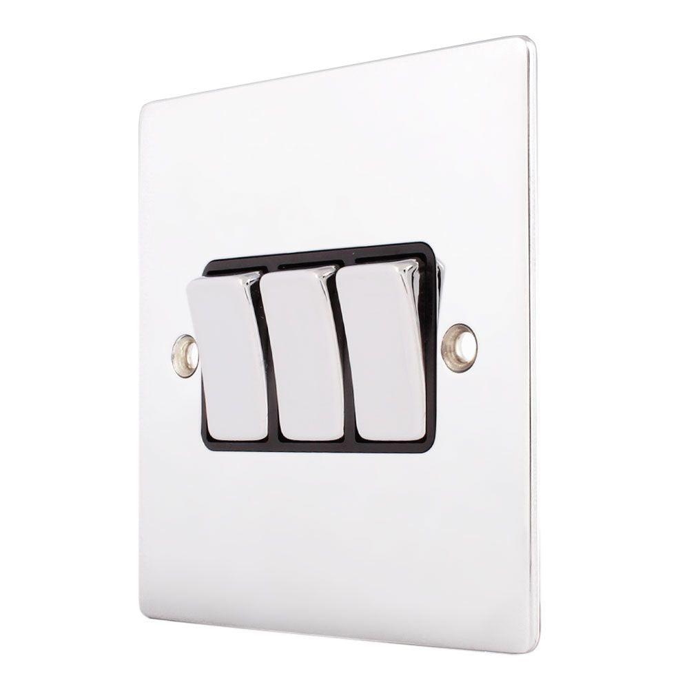 Hamilton 87R23BC-B Polished Chrome 10a 3 Gang Light Switch