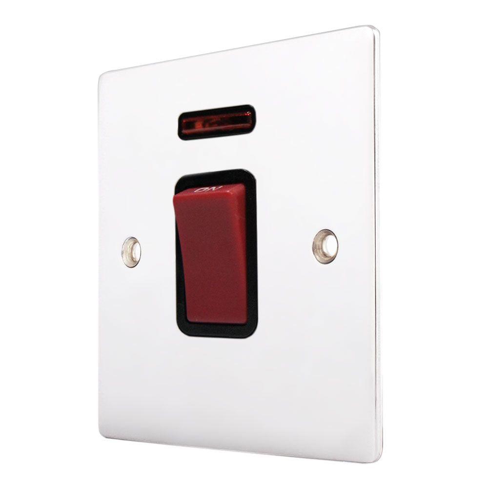 The Hamilton 8745NB is a 45A double pole isolator with neon indicator made using high quality materials, in a slim and elegant polished chrome finish.