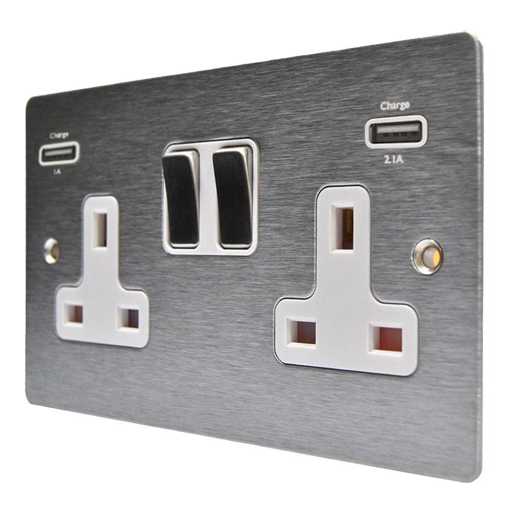 Hamilton 84SS2USBULTSS-W Stainless Steel Switched Double USB Socket