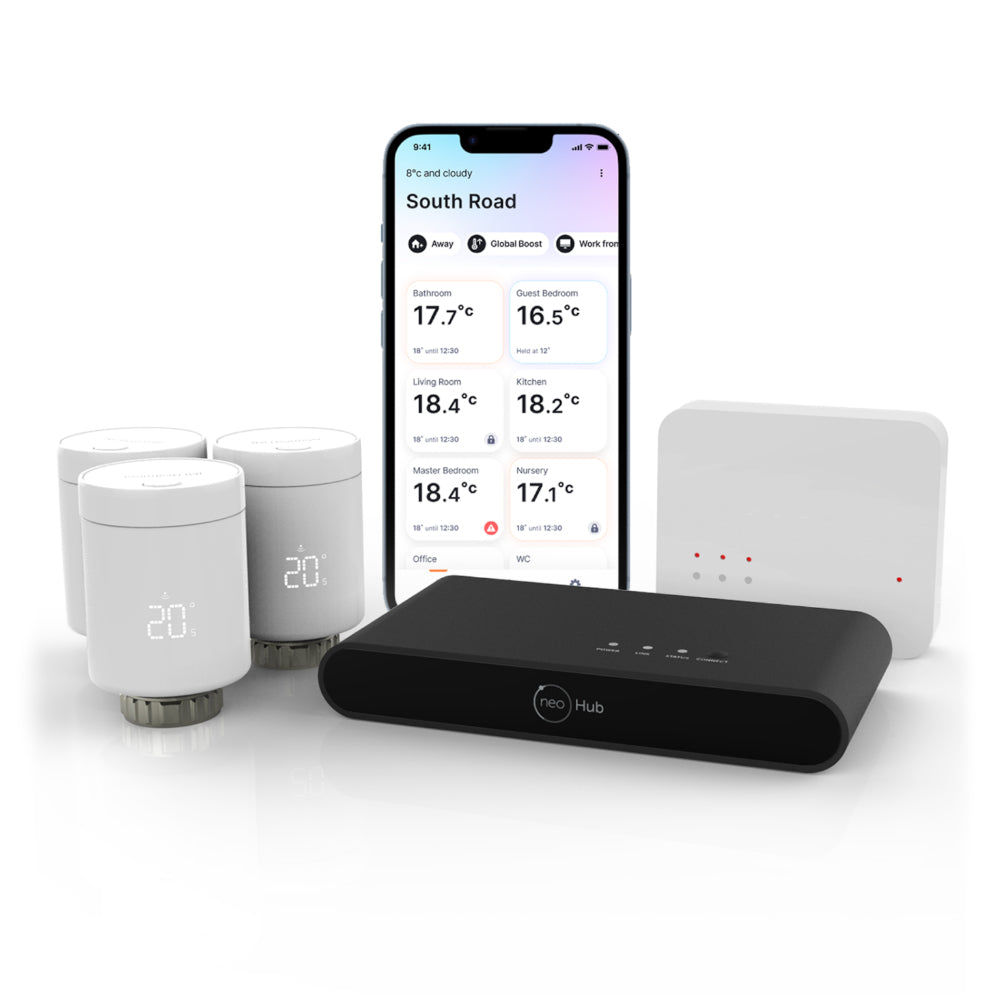 Using the neoHub 3rd generation enables radiator control for UFH and radiator hybrid heating systems, or paired with the IMI Heatmiser RF Switch, can operate the boiler and call for heat room by room.